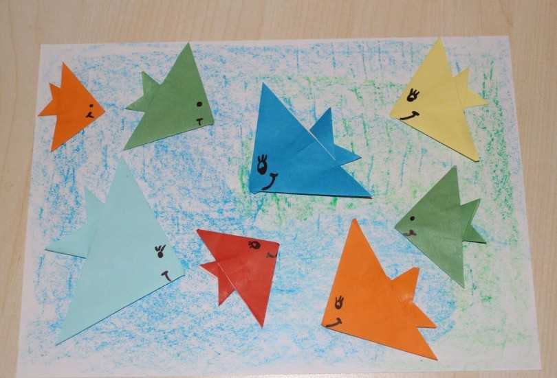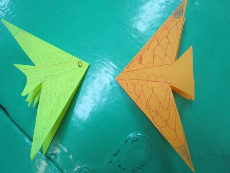 Всяческих видов рыбок из бумаги существует столько, что и не сосчитать. В принципе каждый мастер – хоть взрослый, хоть ребенок – легко может изготовить свой собственный вариант бумажной рыбки. Поэтому будем приводить лишь приблизительные примеры таких поделок. Глядя на них, маленький мастер будет стараться изготовить что-нибудь похожее, и в результате все равно у него получится своя собственная, оригинальная поделка.
