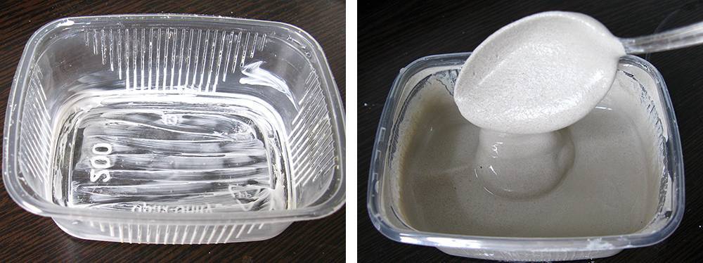 - Разводится гипс (чтобы он напоминал сметану), избегая образования пузырьков.