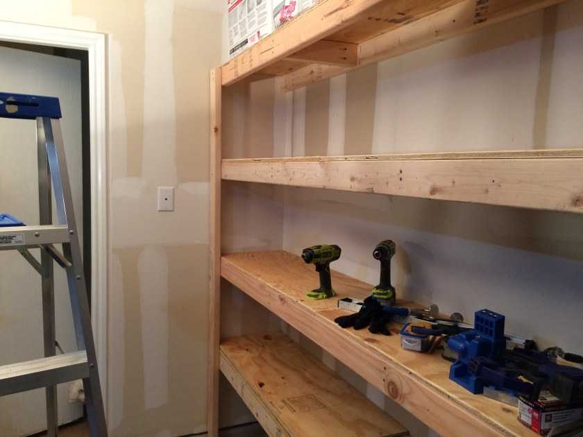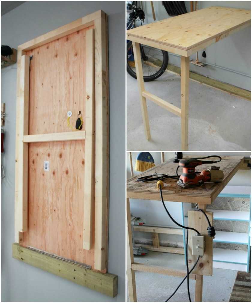 Если в гараже имеется отдельное помещение (щитовая, подсобка), его дверь можно переоборудовать в своеобразный стеллаж для хранения лёгких небольших принадлежностей.