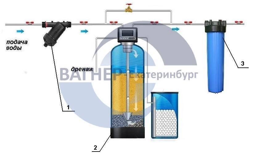 Рис. 5 – Схема очистки воды в квартире с использованием умягчающего картриджа для Big Blue 10″