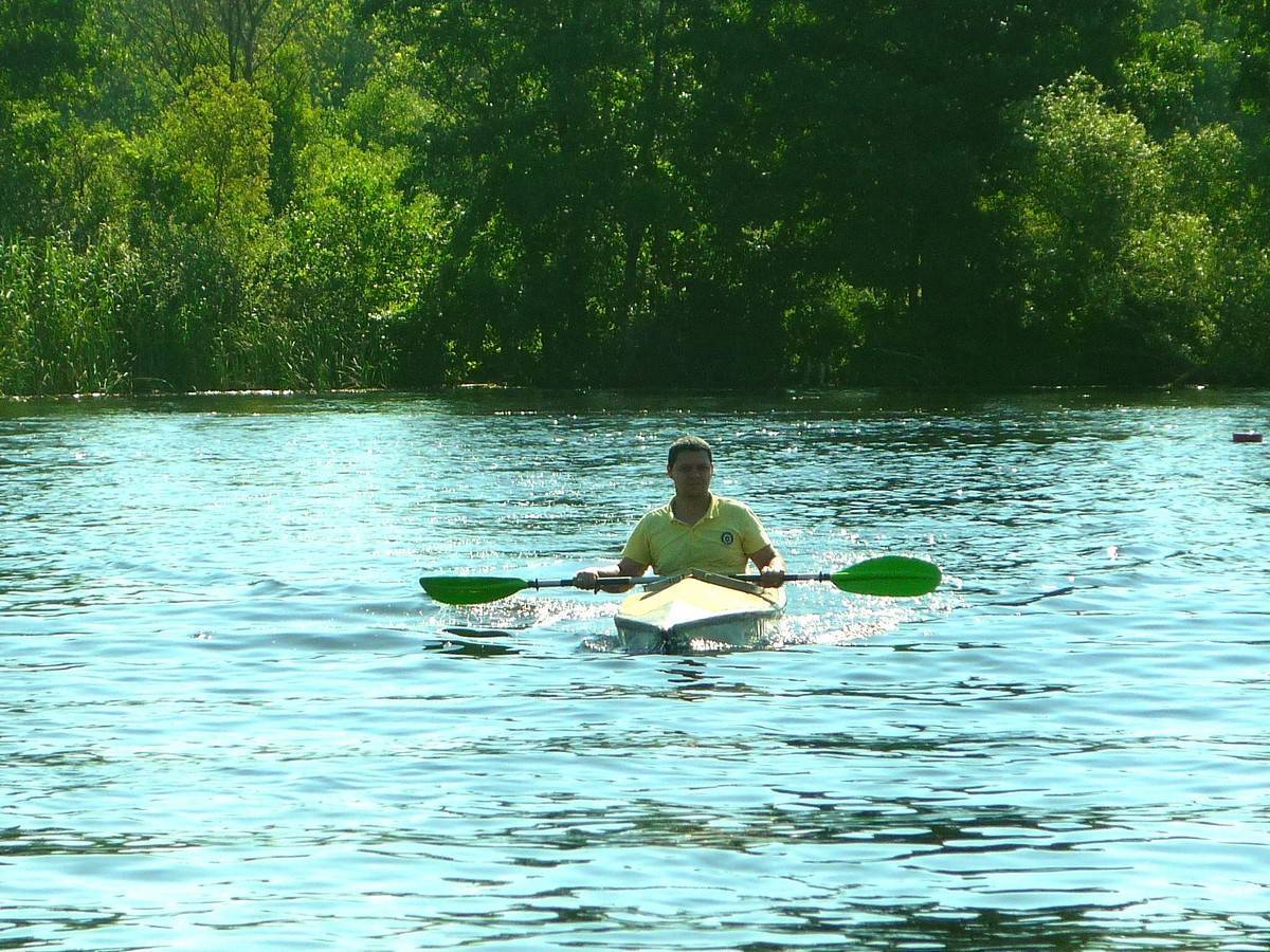 Второе, что сразу бросается в глаза – легкость и скорость. Каркасные лодки вообще более скоростные, даже чем каркасно-надувные. Но раньше я всегда ходил в двухместных байдарках, в том числе и каркасных, когда рывок от твоего гребка сглаживается весом матроса (капитана). Тут же благодаря малой осадке и отсутствию лишнего веса каждый гребок ощутимо ускоряет тебя. При этом, скорость значительно выше, чем у того же Викинга. Катался на реке Воронеж и по течению, и против.