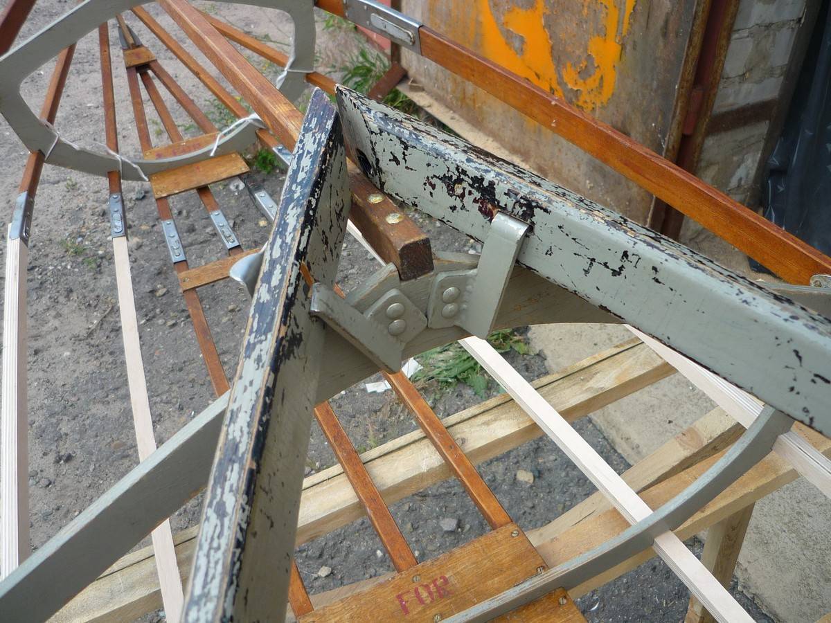 Всего в жестком каркасе пять шпангоутов. Все вырезаны из фанеры 9 мм. На них можно разглядеть остатки чертежей и еще какие-то надписи карандашом от руки.