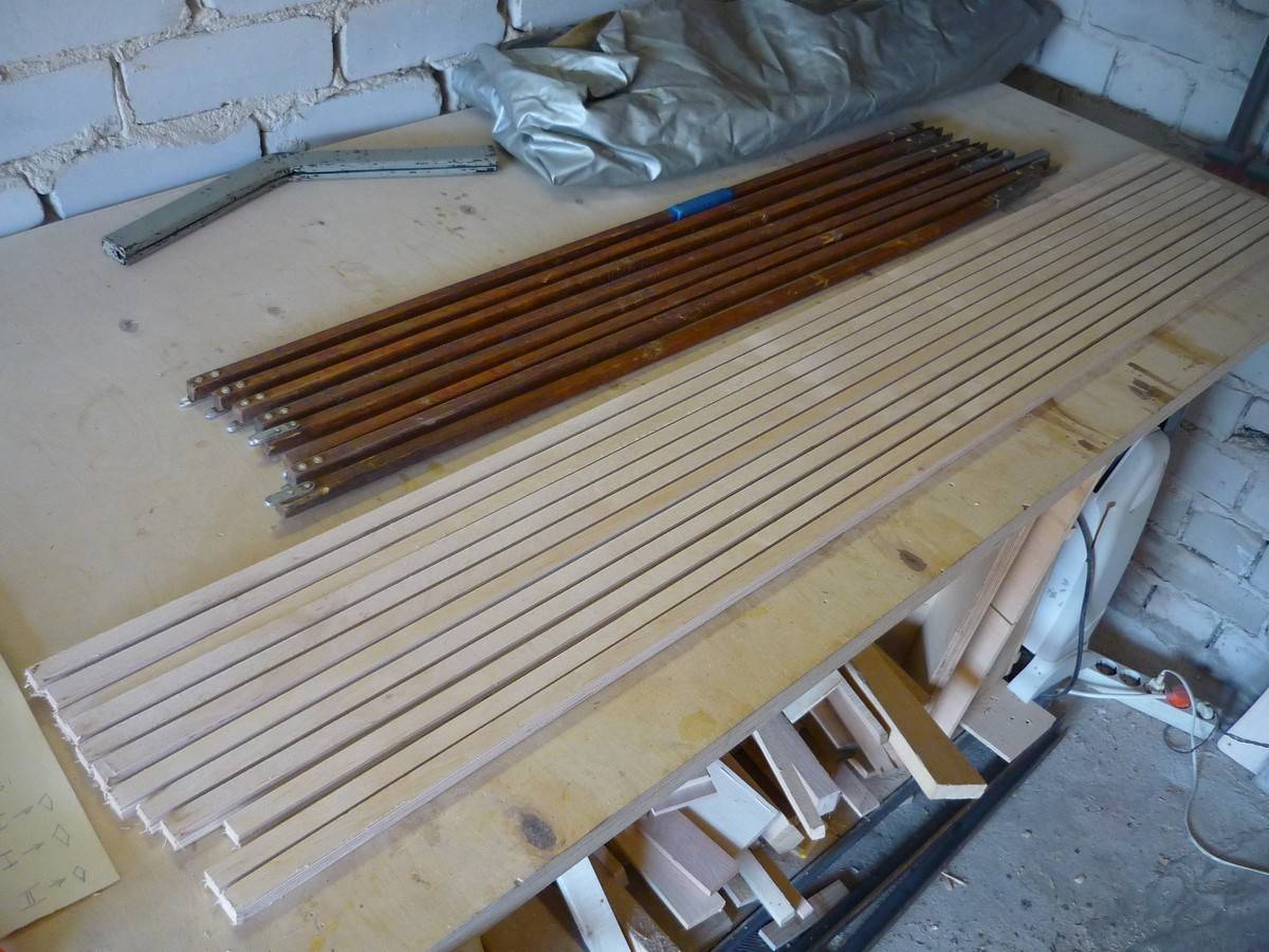 Когда начал изгибать перегнул концы стрингеров и тут ХРЯСЬ – первая пара стрингеров лопнула.В общем-то не велика потеря. Сделать новый деревянный стрингер – дело пятнадцати минут. Нужно было все-таки до конца разобраться как же защелкивать стрингера. Поэтому предпринял еще одну попытку, загнув концы стрингеров в другую сторону. Но результат тот же – ХРЯСЬ.В третий раз взялся за стрингер и опять концы деревяхи остались в руках. Короче, результат на фотографии. На этом эксперименты закончились.