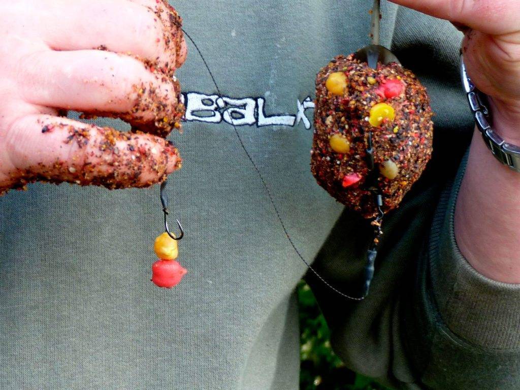 Если используется поплавочная снасть, то зерна насаживаются на крючок, использовать совместно горох, отварную перловую крупу или пшеницу.