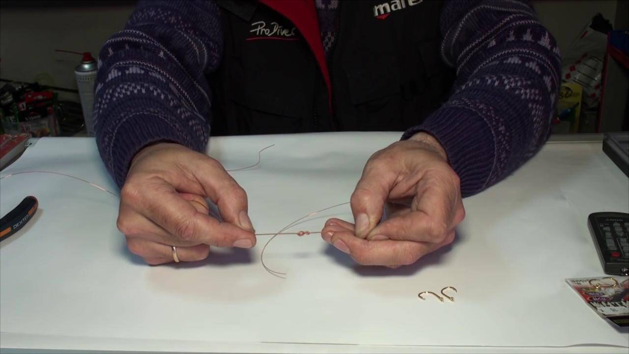 Теперь основной поводок не сможет спутаться с дополнительным, правильная завязка обеспечивает перпендикулярное положение второго крючка.