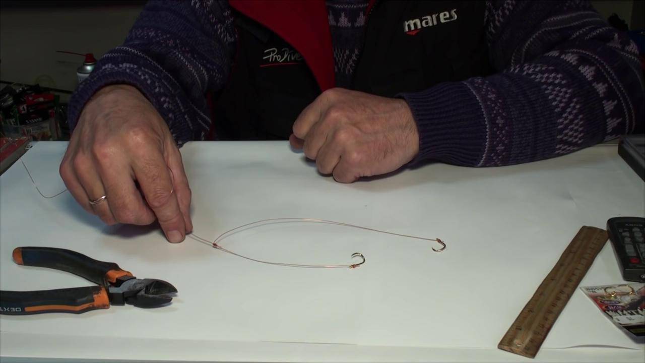 - Оставшуюся часть лески используют для наматывания второго крючка. Делается это схожим образом.