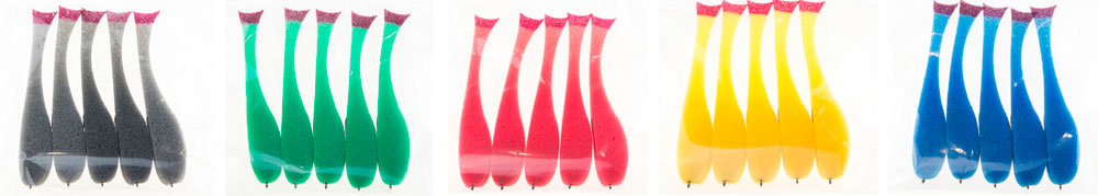 Среди мягких приманок для спиннинга особо выделяются поролоновые рыбки. Это сугубо наше, отечественное изобретение, достаточно успешно сработавшее в лове судака, уже признано мировым сообществом рыболовов как эффективный и работоспособный инструмент. Имитация изготавливается из плотного поролона в форме малька или морковки раскрашиваясь в перспективный цвет. Иногда поролон пропитывают аттрактантом делая съедобный вариант поролона наподобие силиконовой насады. Имитатор требует обязательной отгрузки, чаще всего которой являются стационарные джиг-головки различной массы и величины.