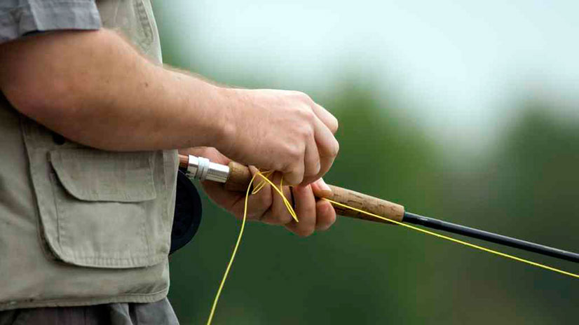 - Сдвиньте узел по цевью в сторону лопатки, намочите леску и окончательно затяните узел, удерживая оба конца лески.