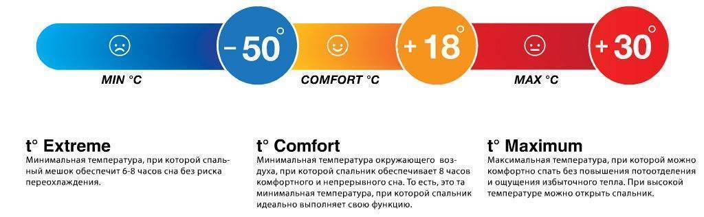 Как правило, все спальные мешки можно отнести к одному из представленных ниже диапазонов температур: