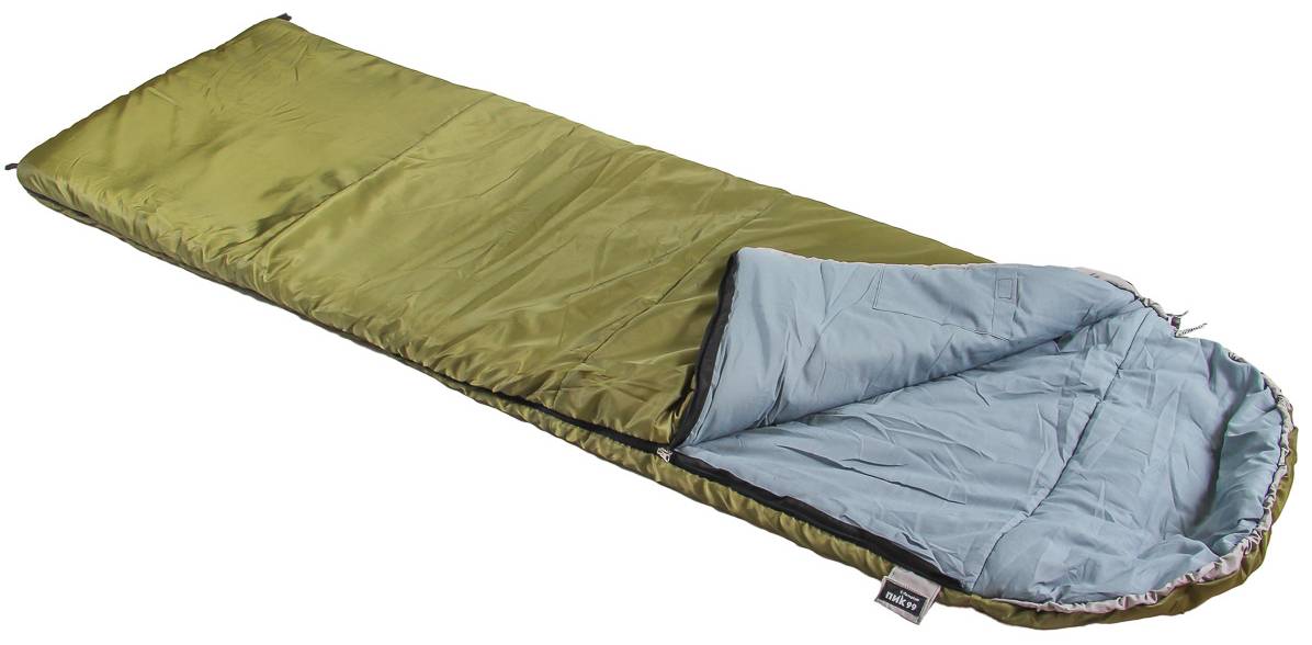 Спальное место длиной 230 см с капюшоном, но есть нюанс — форма в виде вытянутой трапеции не позволит вольготно расположиться и повертеться внутри. Отзывы владельцев данной модели единодушно гласят, что ногам некомфортно, присутствует ощущение стянутости. В верхней части мешка размер достигает 85 см, по низу — 55 см.