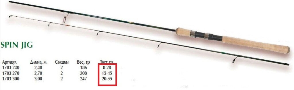 Параметр нужен, чтобы определить диапазон рабочих приманок, с которыми рыбалка будет эффективной. Завысив верхнюю рекомендованную изготовителем границу теста, существует риск поломать jig удилище. Использование лёгких приманок, чем заявленный тест работаю плохо. Их неудобно доставлять в намеченную точку они плохо планируют, не долетают до дальней точки. Нужно ориентироваться в классификации спиннингов в зависимости от указанного производителем теста: