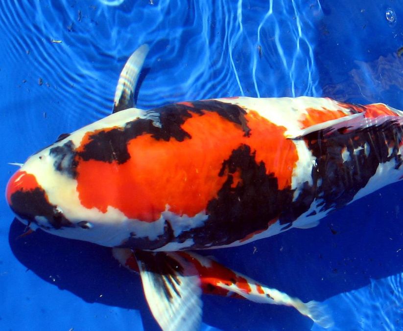 - Асаги (Asagi): чешуйчатый карп с сетчатым рисунком на синем фоне
