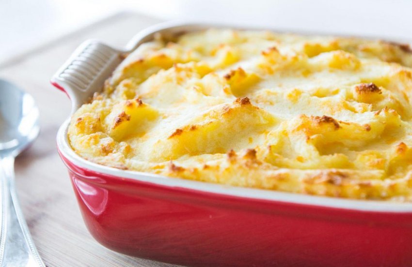 - Для пюре необходимо очистить картофель, после чего отварить его в подсоленной воде. Затем следует добавить молоко и сливочное масло, и растолочь. Не забудьте оставить немного молока для заливки.