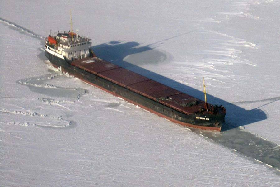 Вечером 5 февраля пресс-служба МЧС опубликовала на своем сайте фото еще одного сухогруза во льдах.