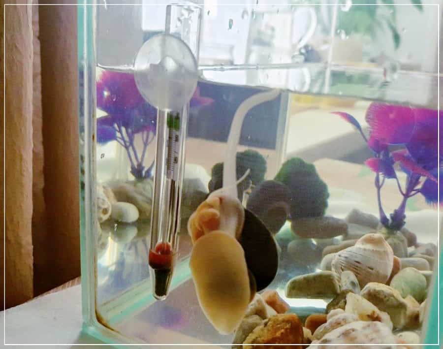 Так как улиткам подходит температура аналогичная окружающей среде, нагреватель не нужен. Если же в комнате более низкая температура (особенно стабильно в зимний период), лучше всего позаботиться о дополнительном подогреве. Чтобы не нарушить комфортную среду, нужно отслеживать уровень её нагрева с помощью термометра.