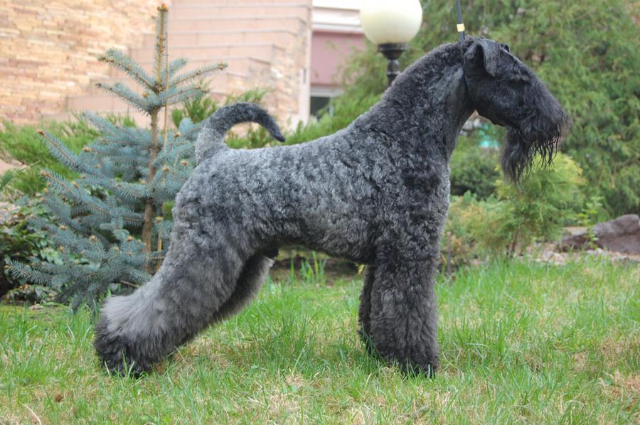 Что касается веса и роста, то керри-блю-терьер относится к крупным особям. Высота в холке у кобелей доходит до 49 см, а у сук – до 48 см. Вес одинаковый и достигает 15–18 кг. Имеют мощную шею, широкую грудную клетку, крепкие конечности. Хвост тонкий и прямой, но обычно его купируют еще в детском возрасте.