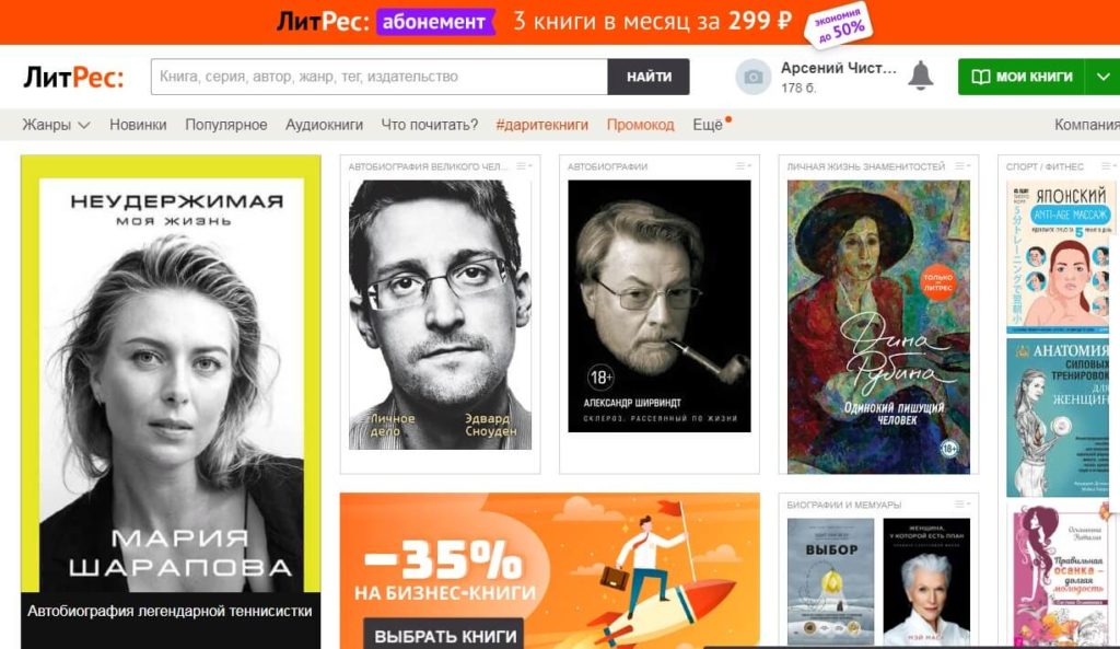 В книжном магазине ЛитРес есть каталог из 1 млн электронных книг на русском и иностранных языках, а также бесплатные экземпляры и аудиокниги. Зарегистрированный пользователь может составить свой список желаемых книг. Когда появляются литературные новинки, их можно посмотреть в специальном разделе.