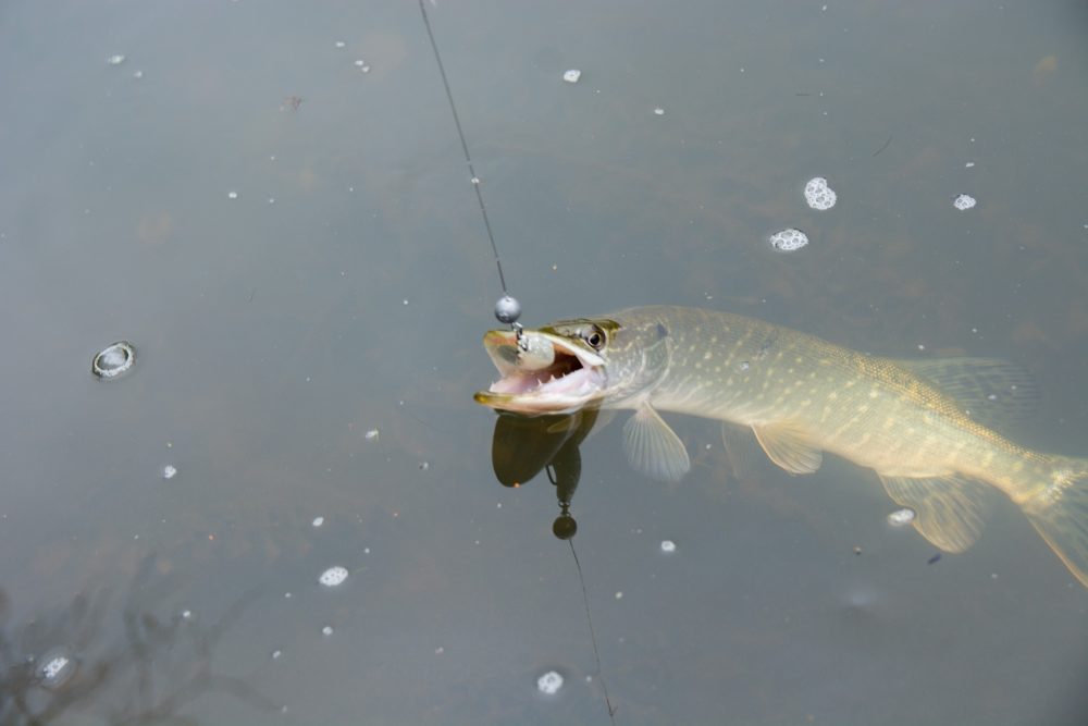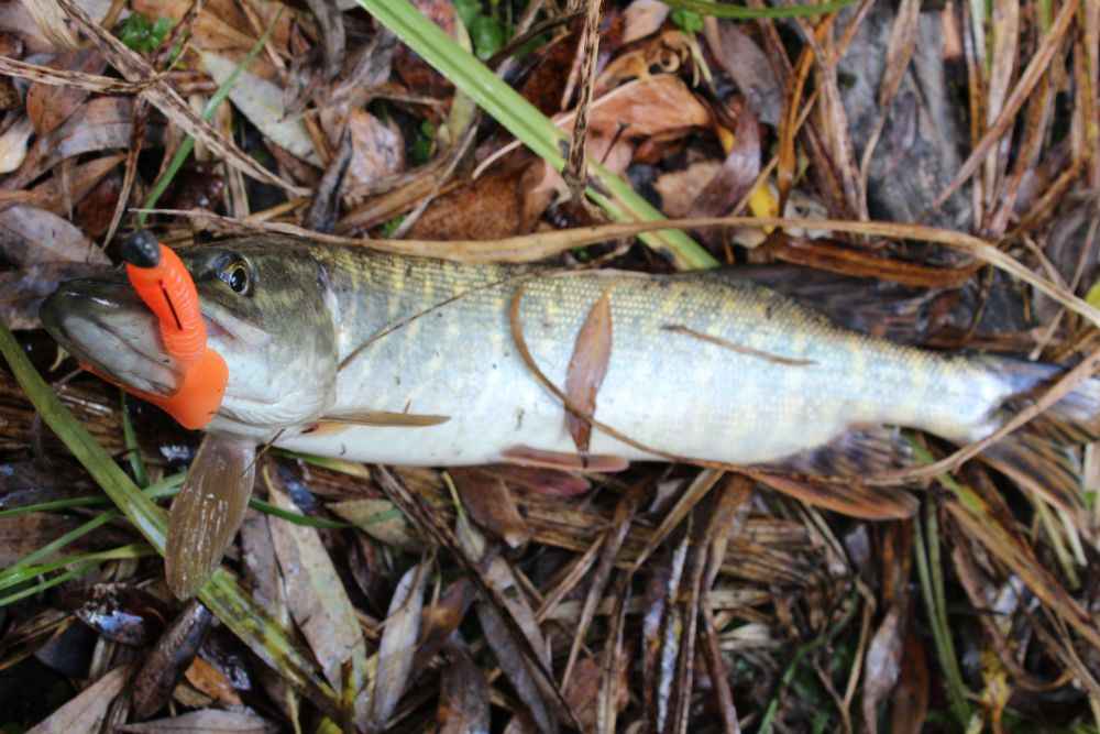 Даже мелкая щука осенью старается схватить приманку покрупнее.