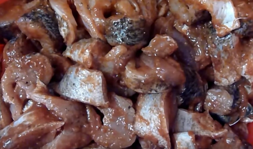 Процесс приготовления начинается с обработки рыбы. Отрезают головы и все костистые части, снимают кожицу, потрошат, промывают. Убирают хребет и крупные кости. (Если хребет оставить, косточки размягчатся, но будут слегка похрустывать). Нарезают филе кусочками одинаковой толщины. Во многих рецептах их солят, перчат, посыпают специями, дают немного полежать.