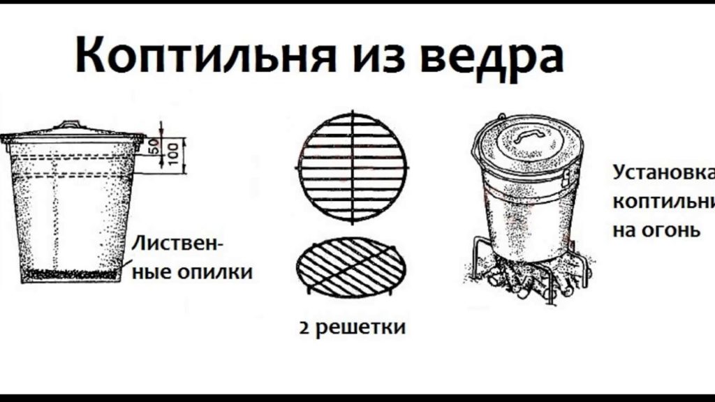 Сделать конструкцию вполне можно самостоятельно из старого ведра и других подручных материалов. Это позволит не только сэкономить финансы, но и приготовить очень вкусные копчености.