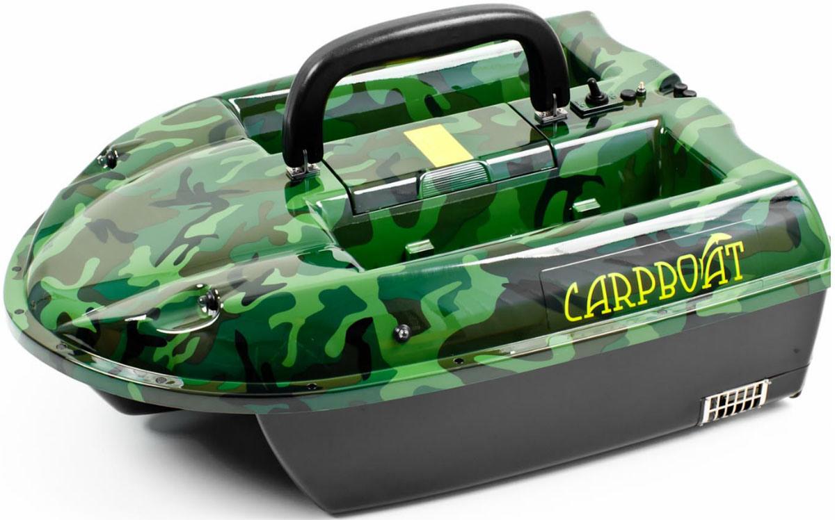 Carpboat Deluxe 2,4Ghz. Цена 55000 рублей. Скорость движения до 3 метров в секунду. Пульт дистанционного управления позволяет управлять им на расстоянии до 1 километра. Аккумулятор работает до 4 часов, в случае его разрядки есть резервная батарея, при помощи которой катер будет доставлен к берегу. Отсек для прикормки, изготовленный из нержавеющей стали вмещает до 5 килограмм.