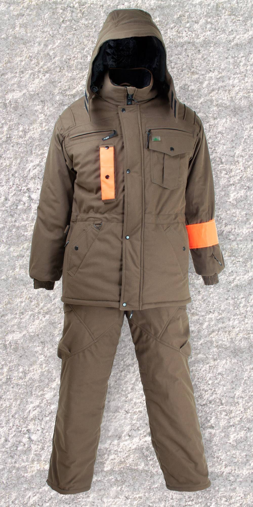 Изнутри одежды использован флис, а снаружи – таслан. Выдерживает температуры до -45 градусов. Куртка оборудована капюшоном, обшитым изнутри натуральным мехом. Одежда характеризуется повышенной водонепроницаемостью, порядка 8000 мм. При малоподвижности способна сохранять тепло.