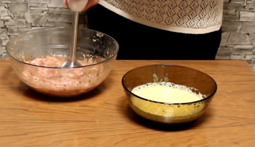 - Главный ингредиент избавляют от пленок и взбивают при помощи блендера.