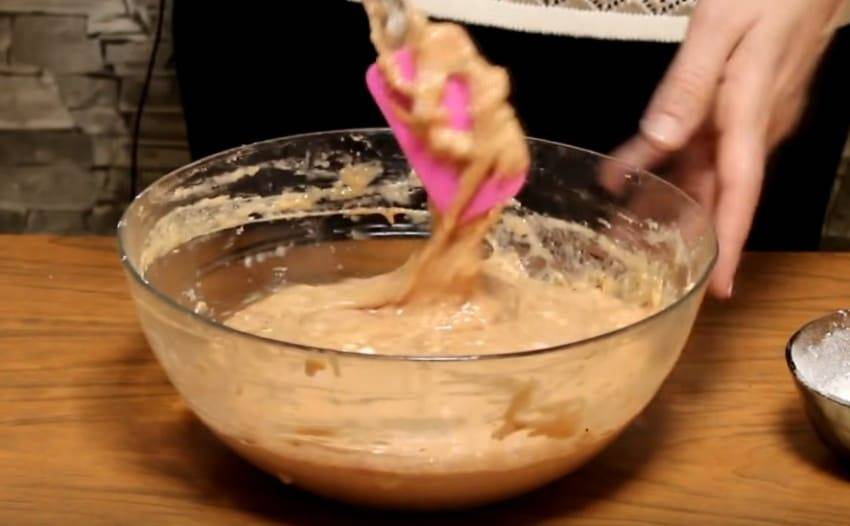 6. Соду смешайте с мукой и замесите тесто, по консистенции похожее на сметану. Оставьте его постоять в течении 5 минут и затем приступайте к жарке.