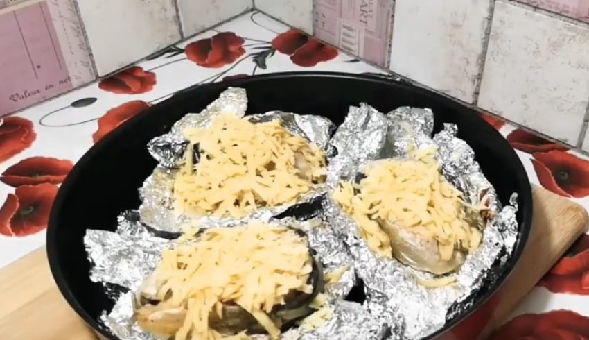 Спустя это время можете убрать верхнюю часть фольги и дать продуктам подрумяниться.