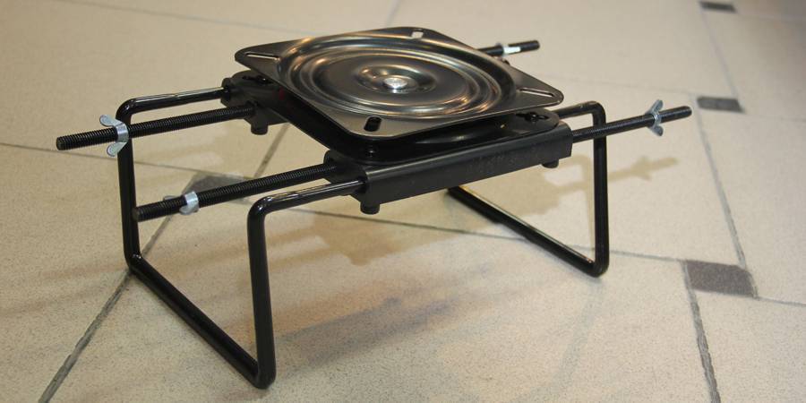 Помимо варианта с накладкой, можно использовать специальные вращающиеся кресла. Устанавливаются они достаточно просто. Для этого берем специальный кронштейн, который благодаря металлическим направляющим, без труда стягивается на сидении.