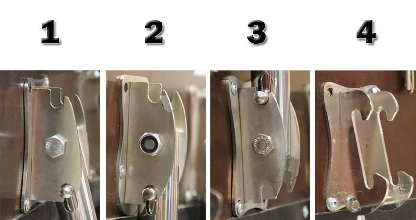 Чтобы зафиксировать устройство с помощью регулировочных болтов, трубки необходимо развести в стороны. В зависимости от типа фиксации, они выпускаются под простые модели складного формата, стационарного исполнения, с поворотными элементами.