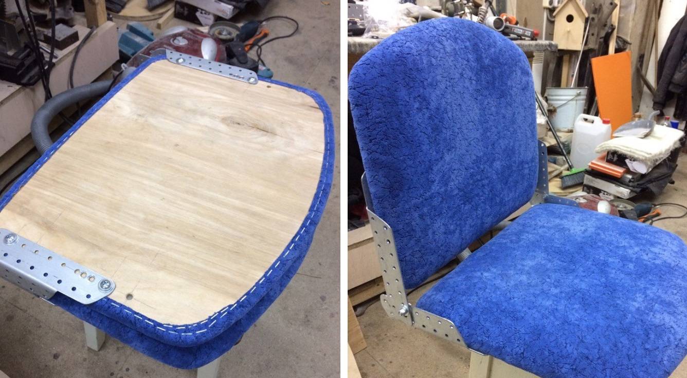 Также можно воспользоваться дополнительным креслом с откидной спинкой, установленным на жесткое сиденье. Чтобы сделать такое изделие вращающимся на 180 градусов, понадобится кронштейн с подшипником и болты.
