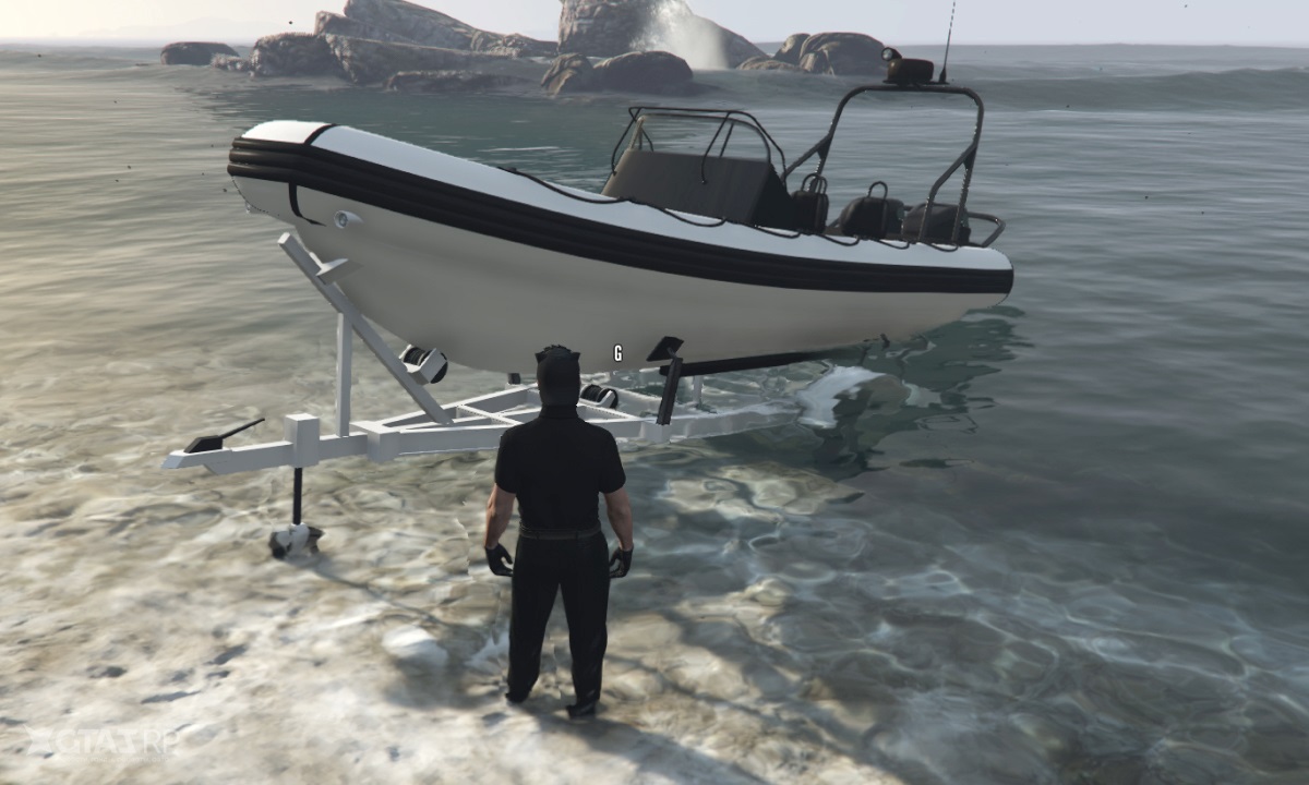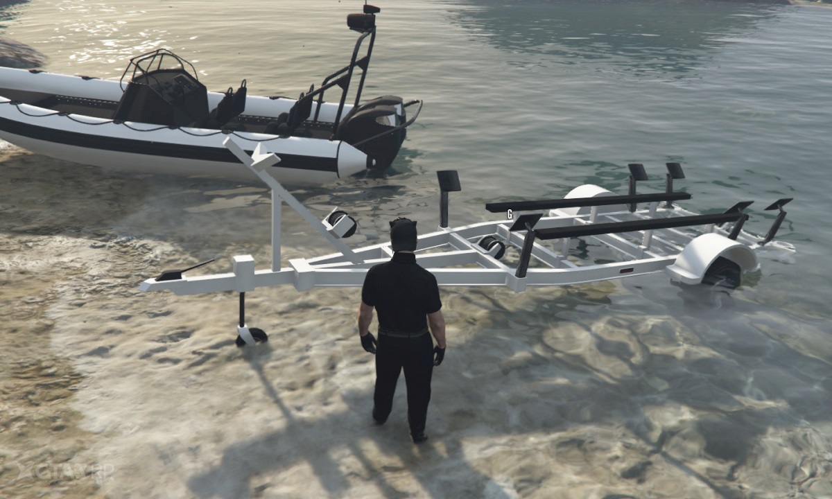 Перед транспортировкой лодки вам необходимо установить ее на прицеп, делается это достаточно просто и не занимает много времени. Нужно лишь подплыть на лодке к прицепу, затем подойти к прицепу и установить на него лодку нажав на «G».