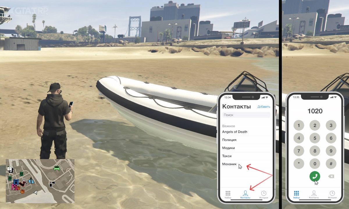 - Эвакуируйте лодку в гараж (через телефон), подойдите к лодке и откройте меню нажав на «G», переместите лодку из гаража на улицу выбрав пункт «Прочее › На улицу», после чего вызовите механика (через телефон) и попросите его заправить лодку.