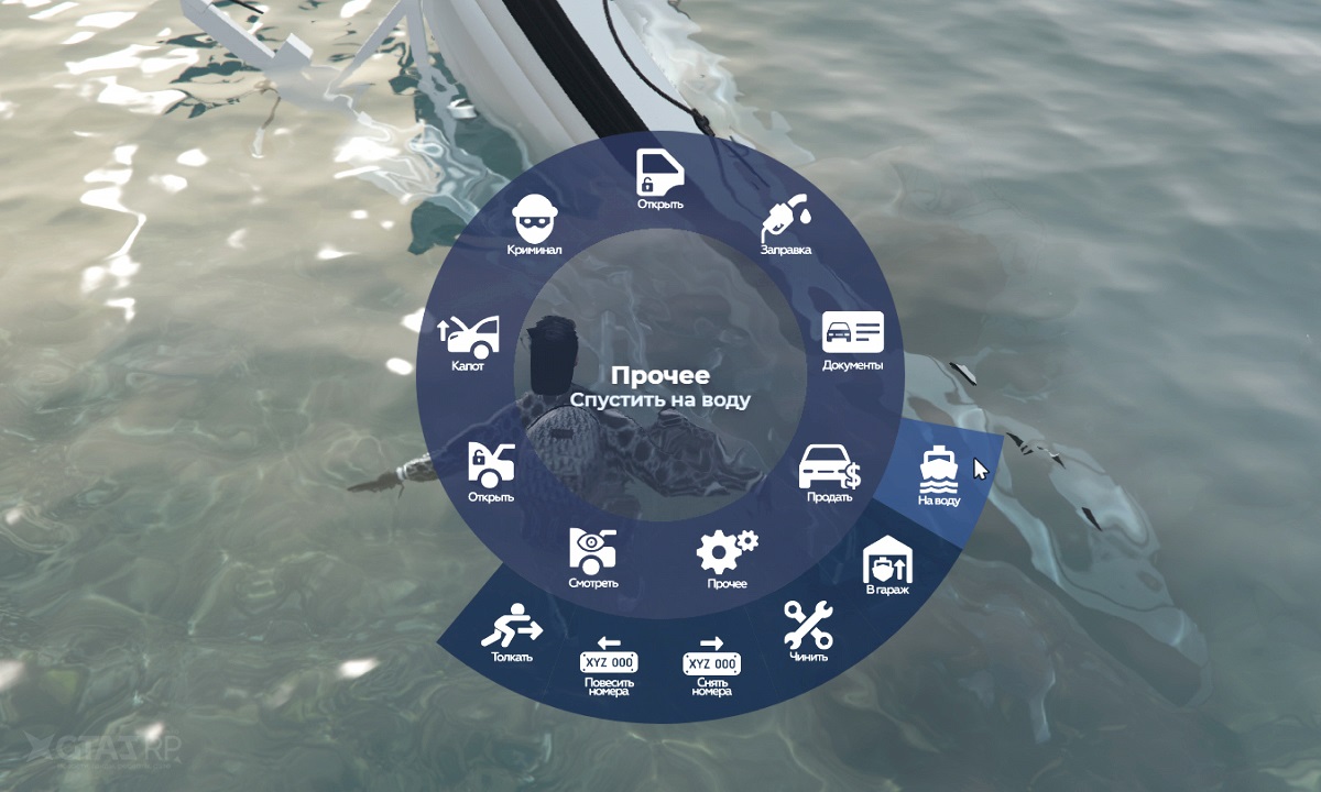 Исправить это и начать пользоваться лодкой можно только спустив ее на воду, сделать это достаточно просто: подойдите к лодке, откройте меню нажав на «G» и спустите ее на воду выбрав пункт «Прочее › На воду».