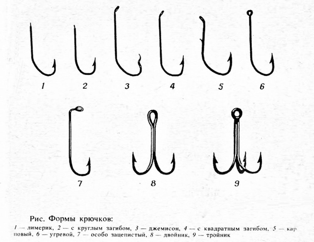 Форма и размеры крючка напрямую зависят от величины предположительной добычи, метода насадки живца и других параметров. Например, крупный крючок не даст щуке захватить его полностью. Слишком маленький размер крючка не способен обхватить пасть рыбы в достаточной мере.