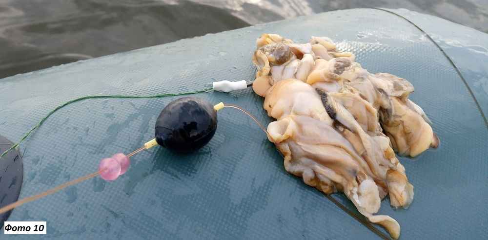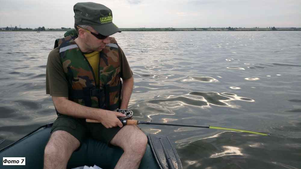 Но остановился на укороченном жестком спиннинге длиной 1,1 м, инерционной катушке (пригодилась старая добрая «Невская») с обычной монолеской сечением 0,8 мм и поводком из шнура (фото 7). Учитывая мои прежние навыки работы с такой катушкой, ловить оказалось удобно. Достоинство лески – не только в амортизационных свойствах, с ней оснастка издает меньше шумов, способных негативно влиять на сомов. Как недостаток – большая парусность, снижающая контроль.