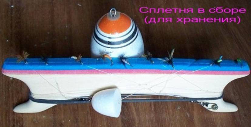 Изготовленную сплетню привязывают к основной леске через вертлюжок. Ловят обычно удилищем длиной 2,7 м и более, с тестом 50-90 г, оснащенным безынерционной катушкой.