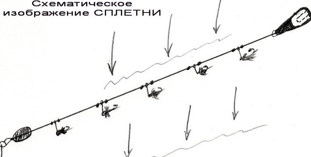 При помощи вертлюга такая оснастка прикрепляется к основной нити спиннинга, и производится заброс. Считается, что ловля на сплетню хороша осенью. Кроме спиннингового удилища, можно использовать для ее заброса нахлыстовый бланк.
