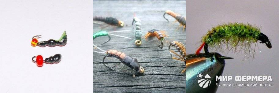 Мокрая — это классическая наживка, немного напоминает: водяных жуков, насекомых и их личинок, головастиков и т. д. У них: