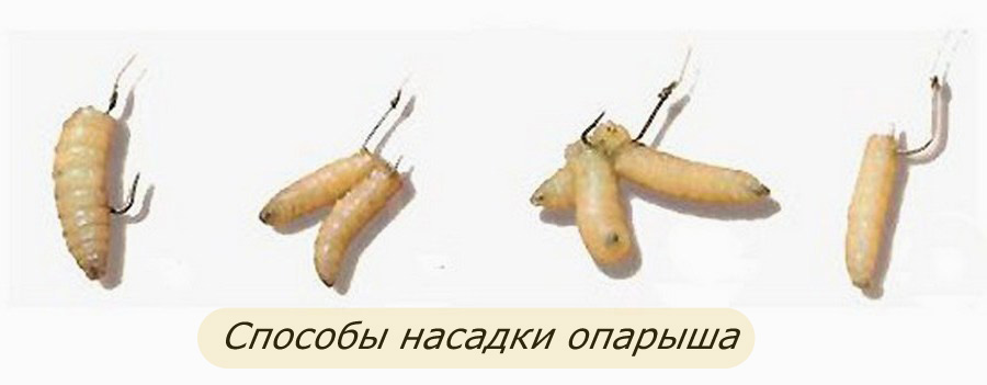 - Опарыш, особенно крупный, часто выручает, когда карась отказывается от других приманок. Из минусов – непрочно держится, часто хватает мелкая рыбешка.