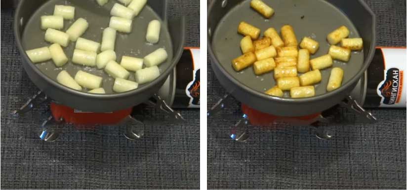 Этот способ готовки используется довольно редко, но карп также хорошо клюёт на такую насадку. Обжарить картофель можно по следующей инструкции: