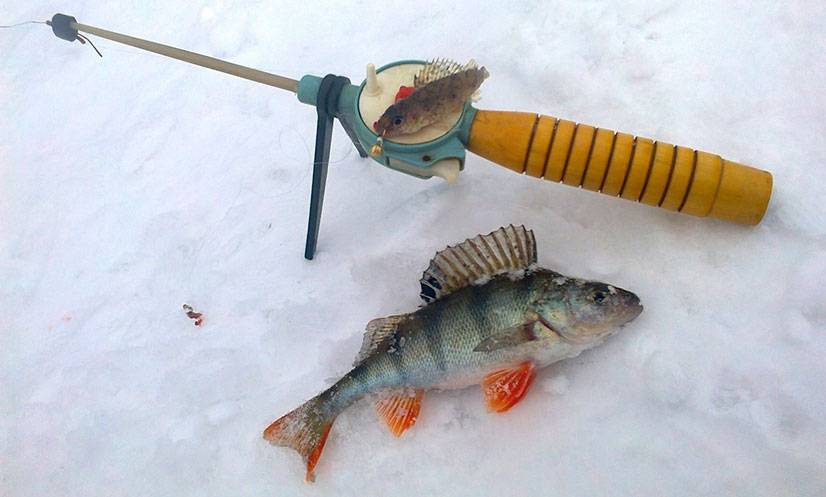Для рыбалки на полосатика в декабре подойдет практически любая зимняя удочка. Также не будет сложностей и с подбором лески – окунь ее, как правило, не рвет.