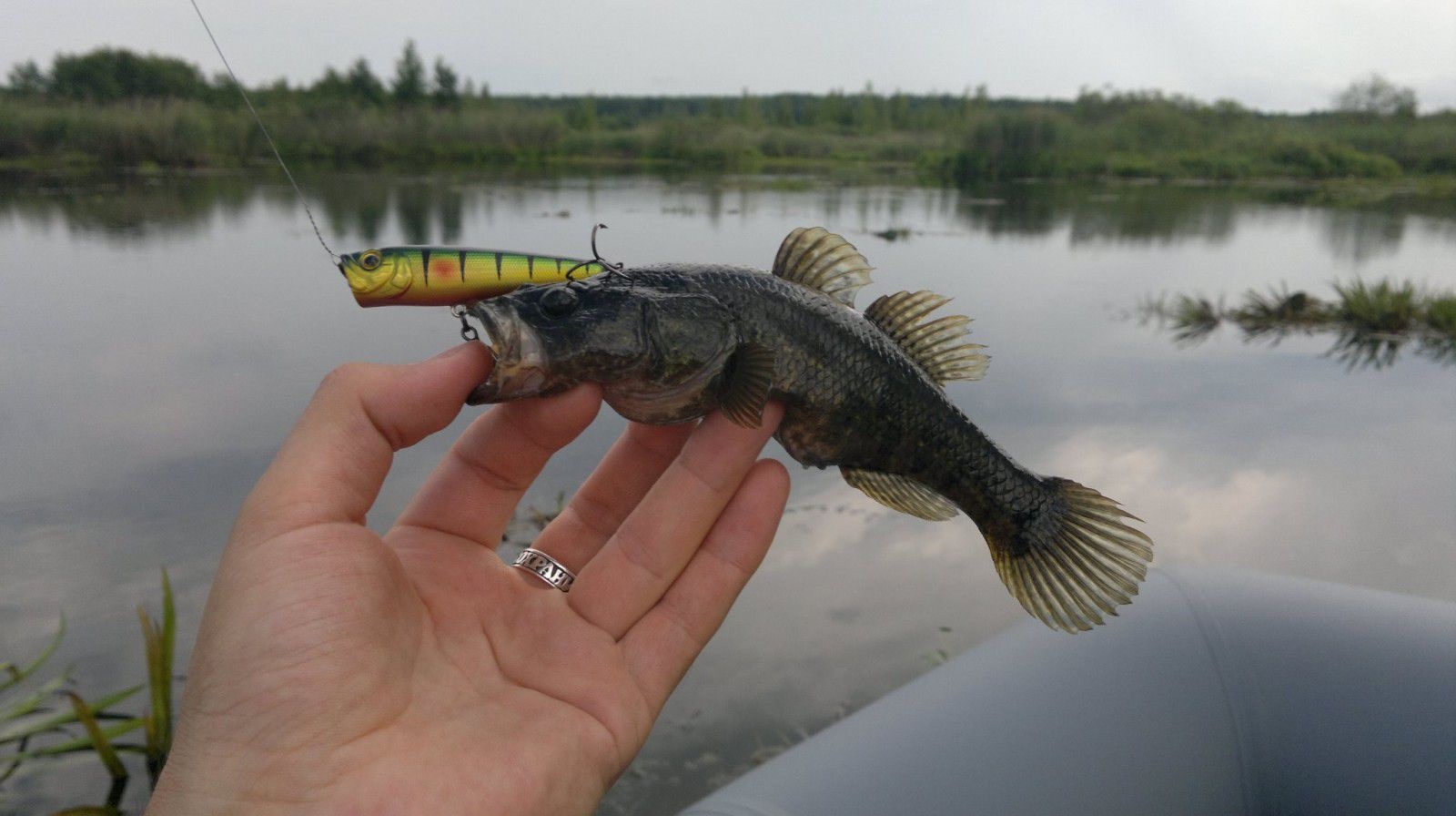 Забросы надо осуществлять впритык к траве, после небольшого ожидания приманку надо пошевелить — активную приманку ротан атакует резко и редко промахивается. И да, именно при ловле ротана работает принцип «большому куску и рот радуется».