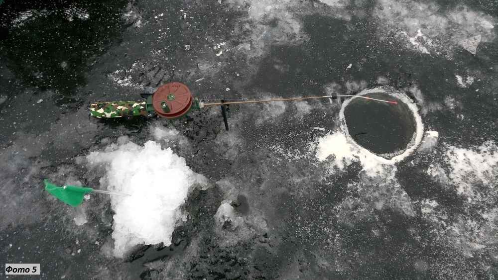 Избранная удочка для ловли леща на глубине – с рукояткой, подходящей для обхвата всей кистью, приставными ножками, выносной шпулей с рычагом стопора-трещотки и гибким шестиком (фото 5). Рукоять обеспечивает постоянство качественной глубоководной проводки при сильных морозах и на ветру. С ней и ножками в совокупности удобно подсекать, если оставить удочку у лунки.
