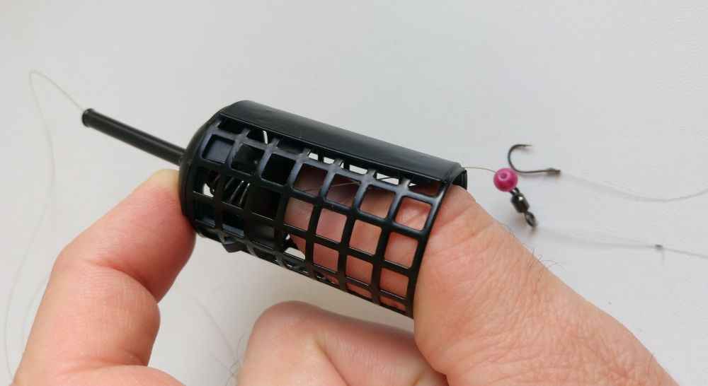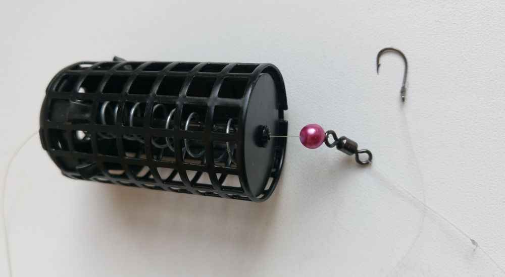 Для фидерной ловли линя подойдет оснастка Гарднера или симметричная петля. Монтаж кормушки происходит через вертлюжок и застежку.