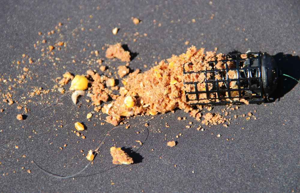 Прикормку лучше забросить в начале рыбалки, а затем кормушку заменить грузилом. Подбросить немного корма в процессе ловли лучше рогаткой или рукой.