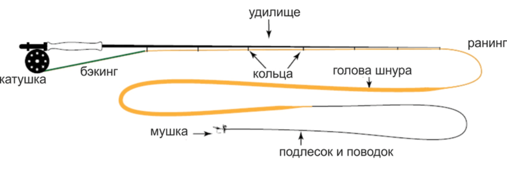 Приманка же ускоряется не за счет своего веса и скорости, а за счет веса шнура. Именно он вставляется на удилище вместо стандартной лески. При этом, старые рыбаки самостоятельно могли плести такой шнур из конского волоса, но сейчас его легко приобрести в рыболовных магазинах, он будет выполнен из искусственных материалов. Также, шнур для ловли нахлыстом постепенно сужается, что дает возможность при забросе выпрямлять его до прямой линии.