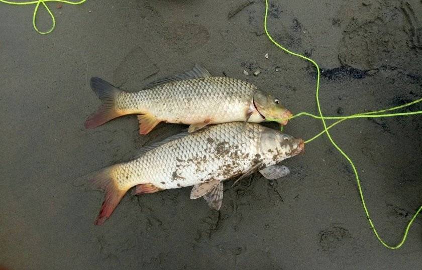 Сазан – сильная, но, в то же время, осторожная рыба. Поэтому с одной стороны оснастки должны выдерживать борьбу с мощным соперником, с другой – быть наименее заметными под водой. Хоть течение и слегка нивелирует опасения усатого, увлекаться толстыми лесками и обилием фурнитуры не следует.