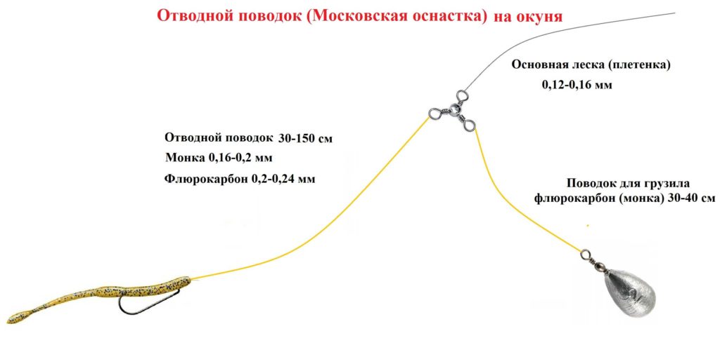 Толщины 0,12-0,16 мм будет достаточно, дабы ловля на отводной поводок окуня проходила без обрыва снасти.